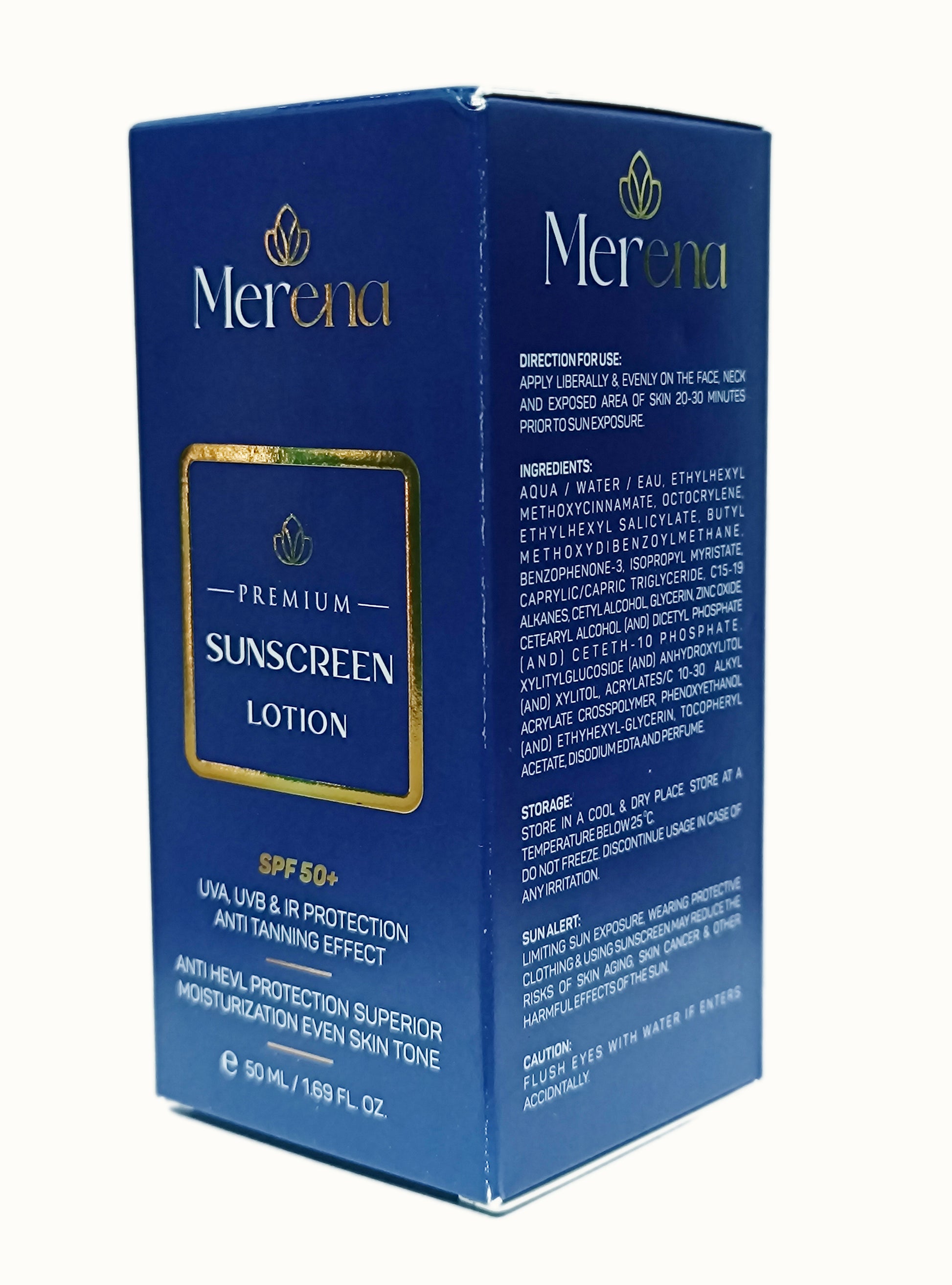 Merena’s Premium Sunscreen Lotion: Superior protection against harmful rays, lightweight formula, and nourishes skin. Elevate your sun care with Merena.